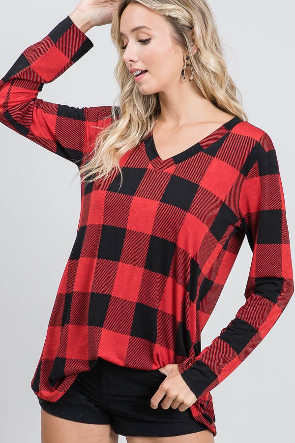 Buffalo Plaid V-Neck Long Sleeve Tunic