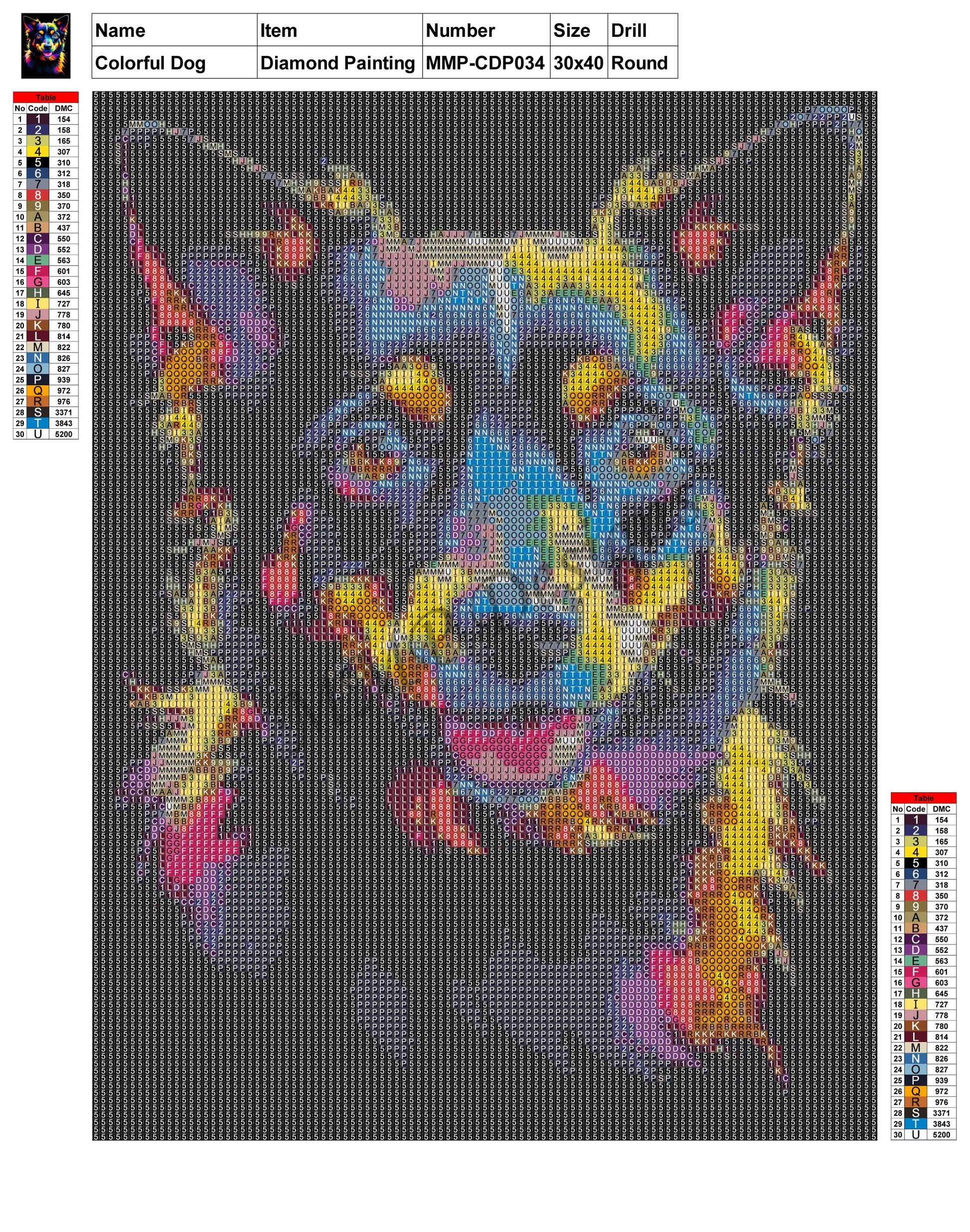 Colorful Dog 30x40 Diamond Painting MMPCDP034