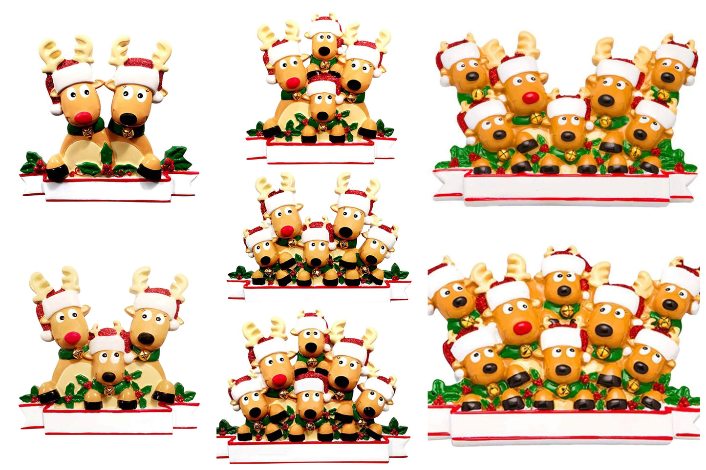 Personalized Poly-Resin Ornament Reindeer Family (2-8 People)