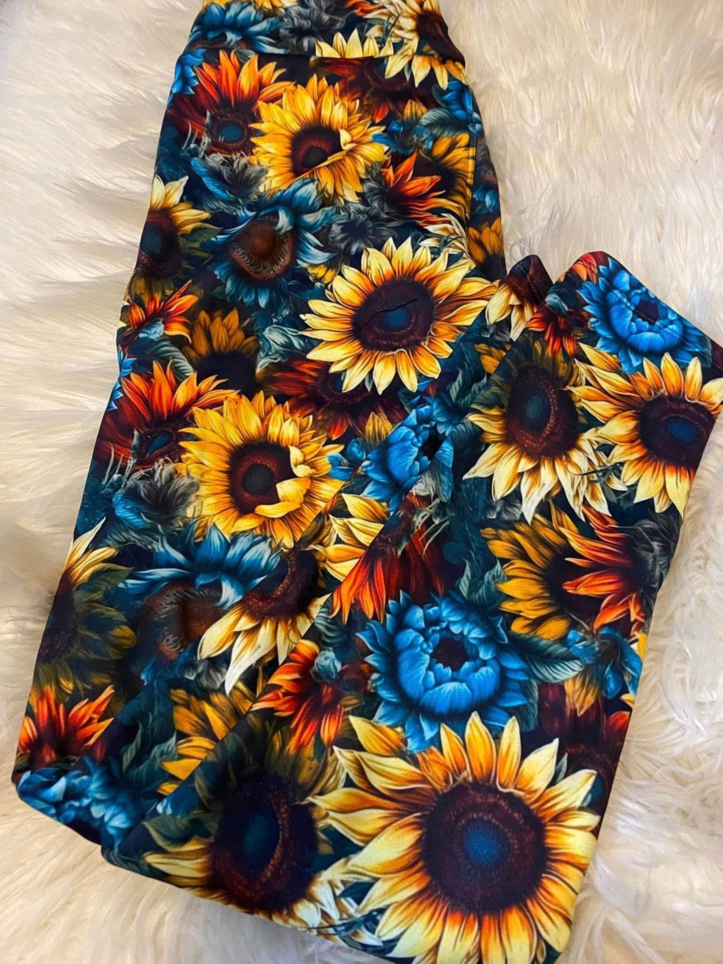 Sunflowers Fleece Lined Leggings with Pockets (SLB)