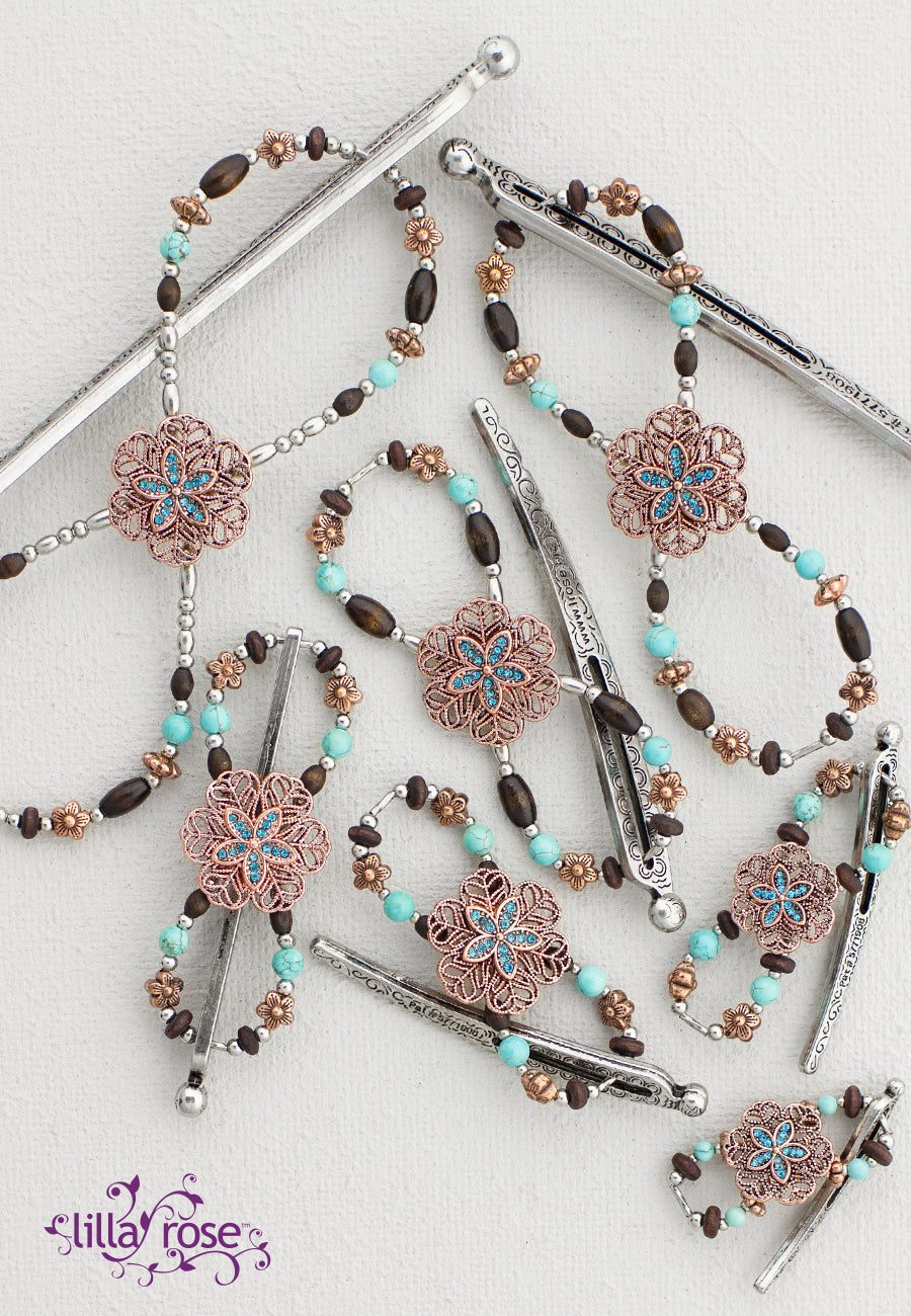 Tawny is warm with its copper and turquoise combination, complete with just the right touch of dark wood.